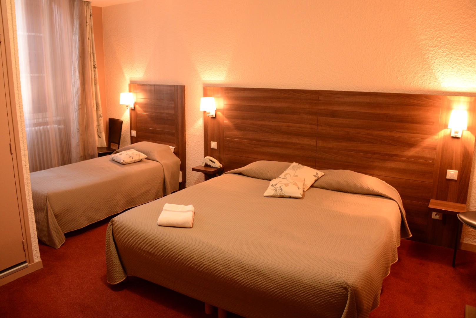 Nos chambres sont disponibles dans plusieurs configurations, allant des chambres simples aux chambres familiales pouvant accueillir jusqu’à cinq personnes. Des lits d’appoint et des lits pour bébés sont également disponibles sur demande pour répondre à toutes vos exigences.